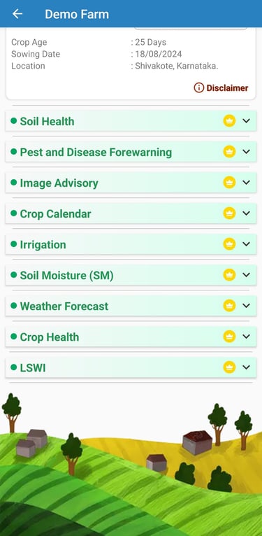 We provide innovative solutions for farmers, including soil testing, irrigation management, pest reports, and weather forecasts, all through our user-friendly app designed to enhance agricultural productivity.